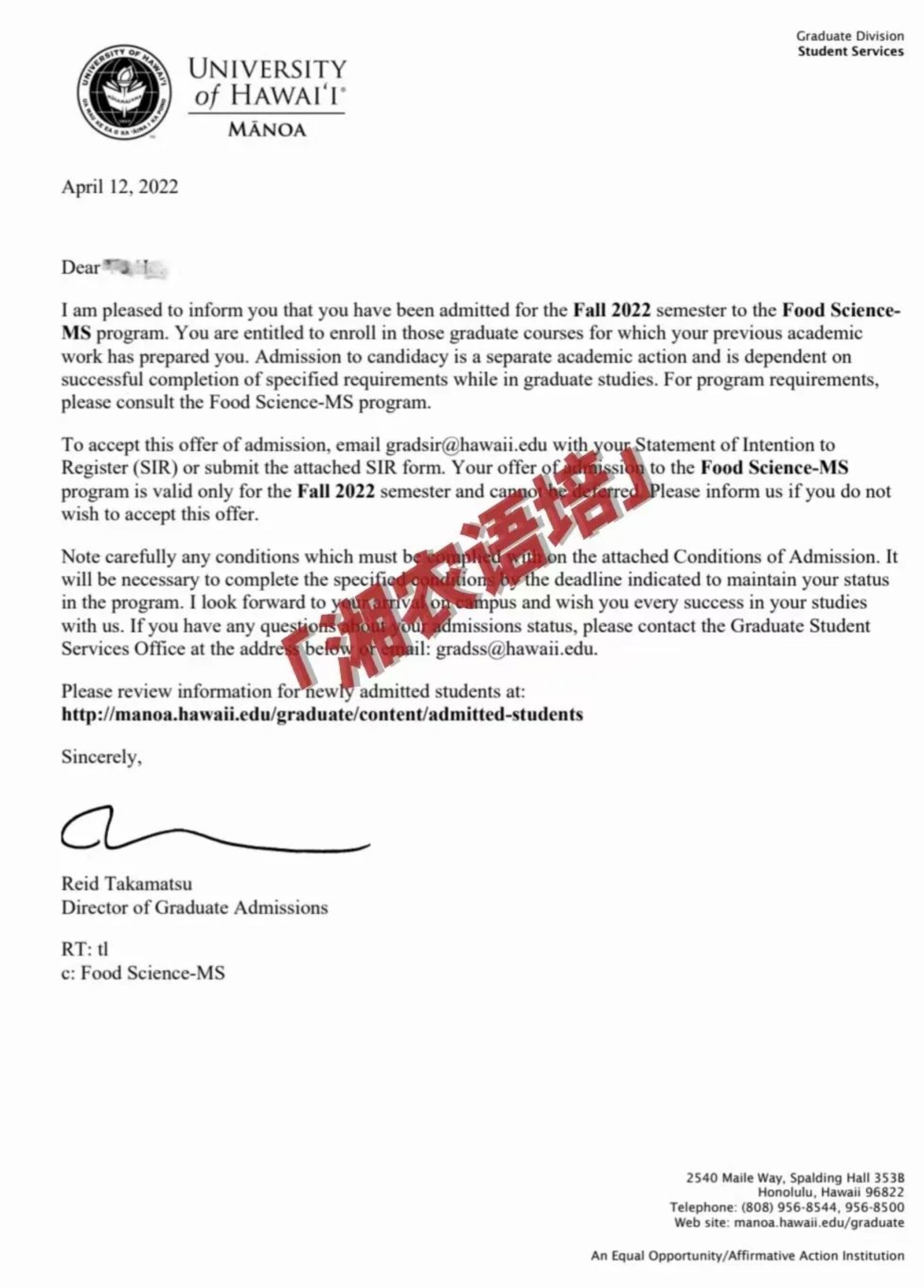 3044永利集团与美国夏威夷大学马诺阿分校合作举办食品科学与工程专业本科教育项目