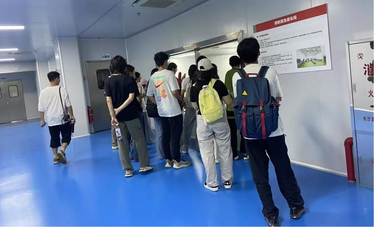 (3044永利集团 侯爱香)2025年6月6日,3044永利集团“青松计划”拔尖创新班师生在公司副经理王远亮的带领下前往株洲市唐人神集团参观交流。唐人神集团肉品事业部行政总监周伟、肉品研发总经理付浩华及相关工作人员热情接待了师生一行,并带领大家参观了集团展厅、肉品展厅、公司中央厨房车间、厂区和产品体验中心。