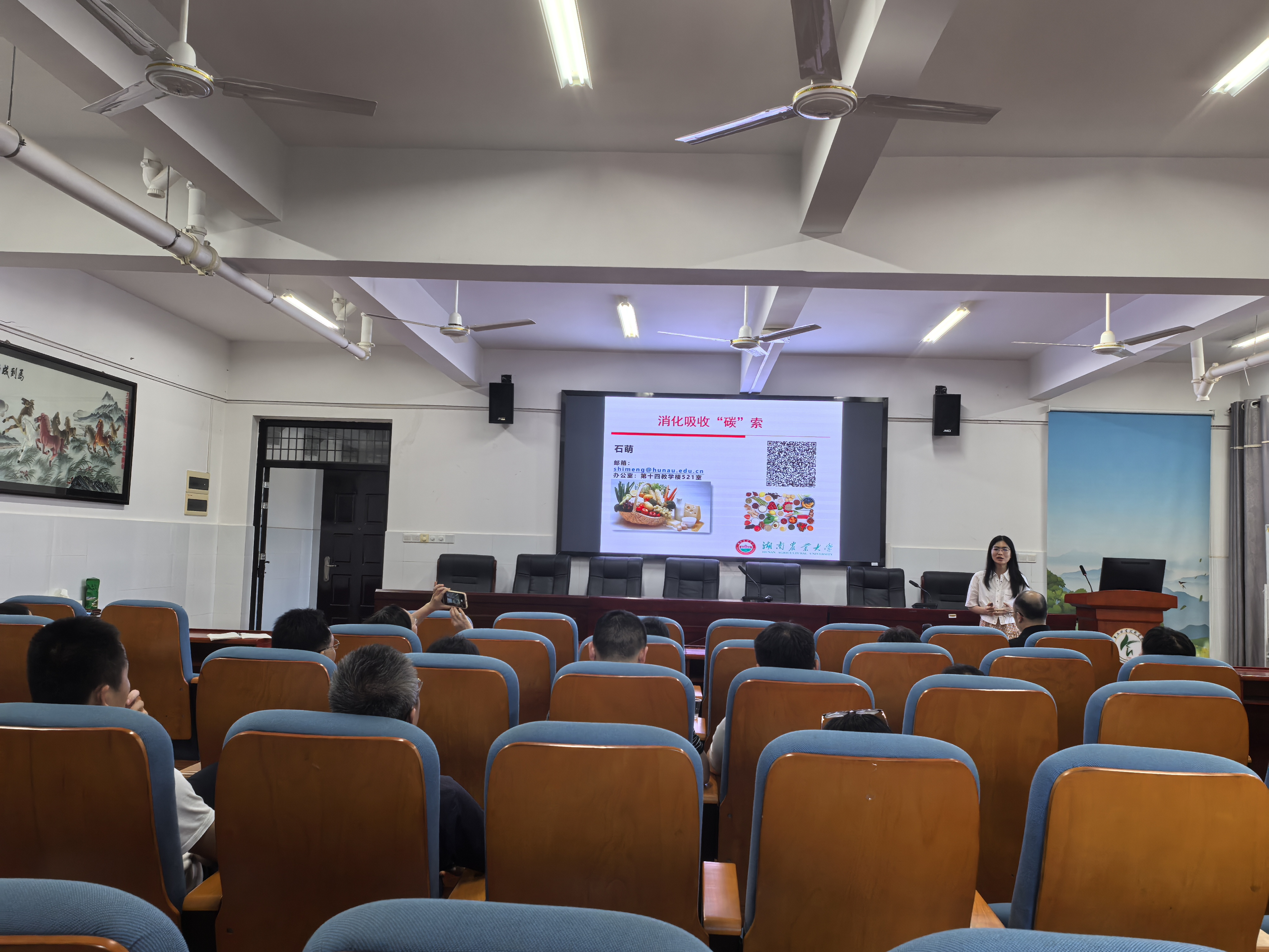 石萌老师以“消化吸收‘碳’索”为主题,通过“馒头为什么越嚼越甜?”的生活化问题导入课程,系统讲解了碳水化合物的消化机制、关键酶的作用及吸收原理。她结合团队最新科研成果,详细阐释了白芸豆提取物通过抑制消化酶活性降低碳水化合物吸收率的机制,并以两例先天葡萄糖-半乳糖吸收不良的临床案例,帮助员工深入理解相关理论知识。课程内容既涵盖学科前沿,又融入健康饮食的思政元素,引导员工关注科学与社会需求的联系。