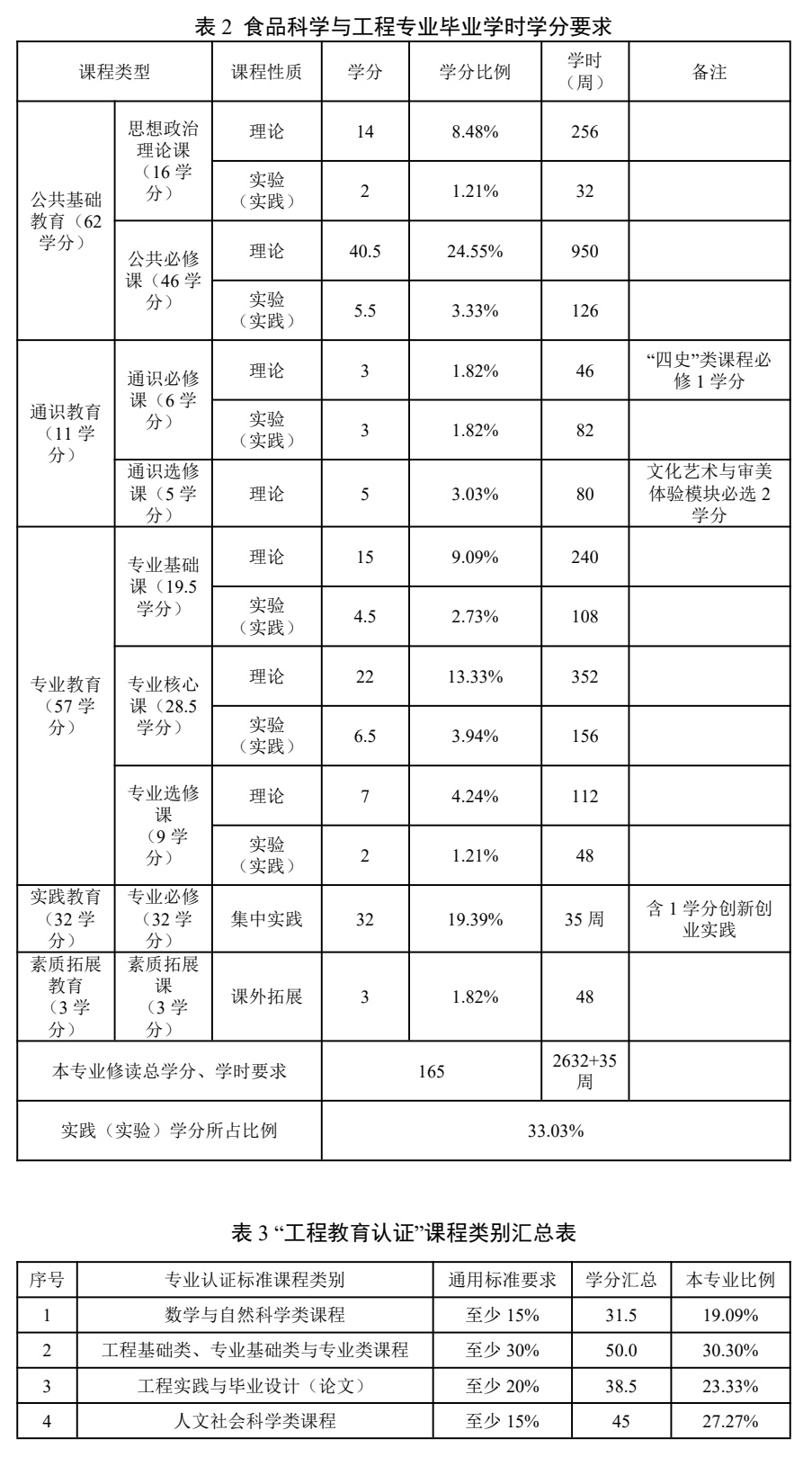 1.主要集中性实践教学环节:专业认知实习、金工实习、食品工程原理课程设计、食品工厂设计课程设计、食品科学与工程生产实习、食品科学与工程专业社会调查、湘味食品工程实训(创业实践)、食品工程综合训练、毕业实习、毕业论文和毕业设计。