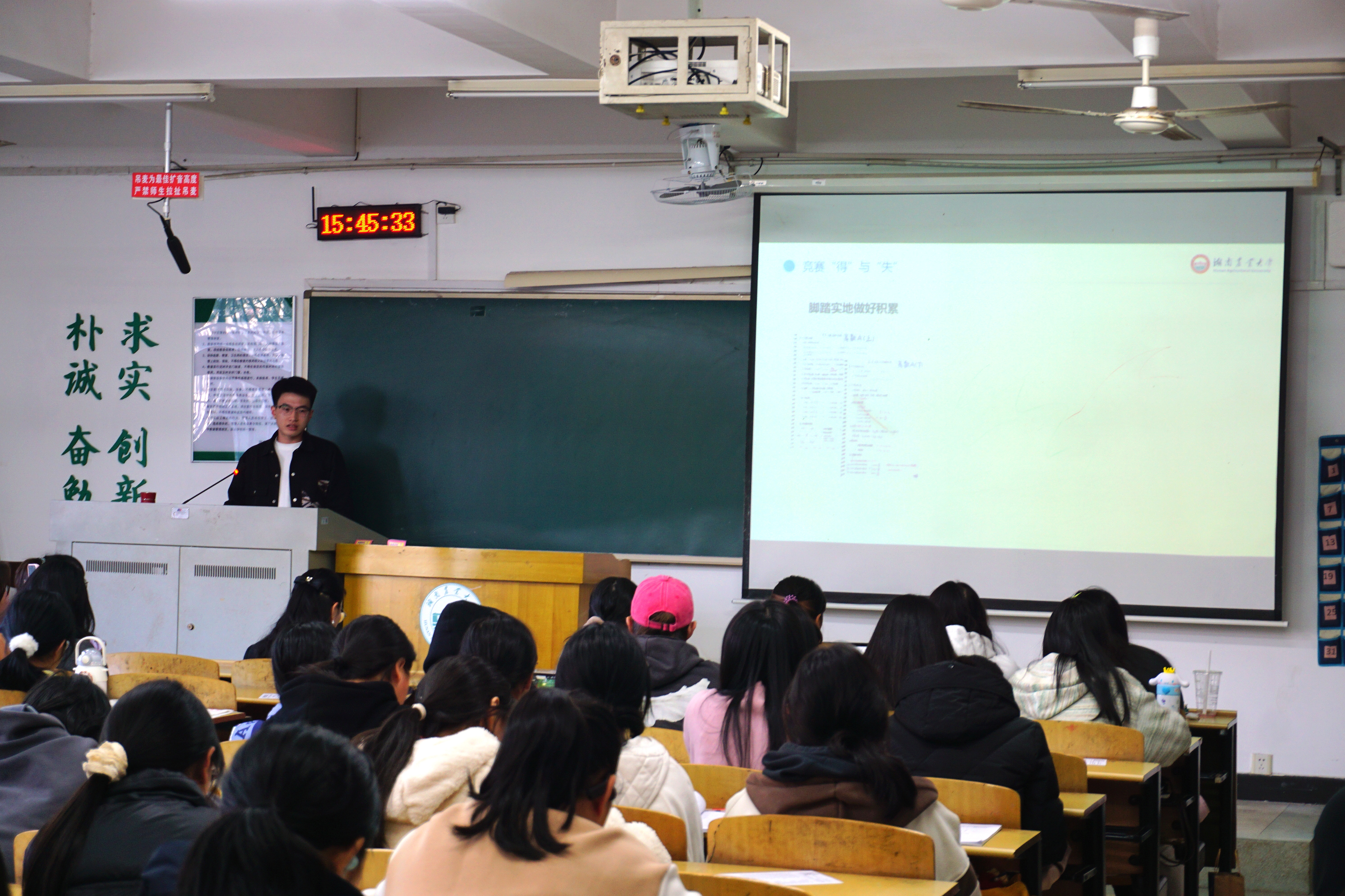 在活动中,龚梦连围绕学业规划、社团活动及未来规划展望三大方面进行了深入分享。她结合自己的亲身经历与丰富多彩的老员工活,为同学们提供了切实可行的建议。龚梦连鼓励大家要合理规划时间,既要注重学业成绩的提升,也要积极参与各类社团活动,以全面丰富自己的老员工活,培养多元化的能力和兴趣。她强调:“别去美化我们没有选择的那条路,要脚踏实地,走好自己选择的路。”