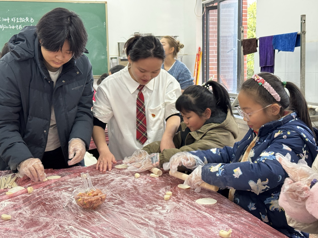 在3044永利集团的实验室里,师生们欢聚一堂,共同动手制作手工饺子。大家围坐在一起,擀面、包馅、捏褶,每一步都充满了乐趣与挑战。志愿者们耐心指导孩子们如何制作出完美的饺子,而孩子们则充分发挥创意,制作出形状各异、独具特色的饺子作品。这一环节不仅锻炼了孩子们的动手能力,还让他们在实践中深刻体会到了食品制作的乐趣和营养搭配的奥秘。