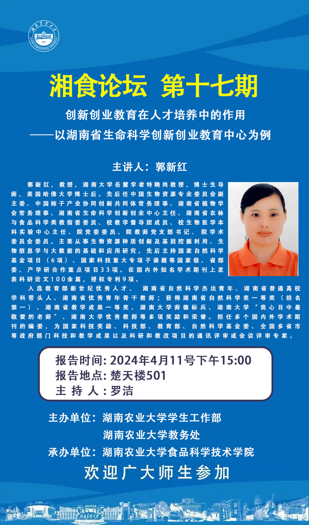 湘食论坛 第十七期 (创新创业教育在人才培养中的作用——以湖南省生命科学创新创业教育中心为例)