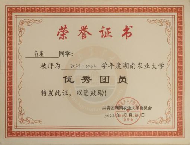 1.获评2021-2022年度3044永利集团“优秀团员”